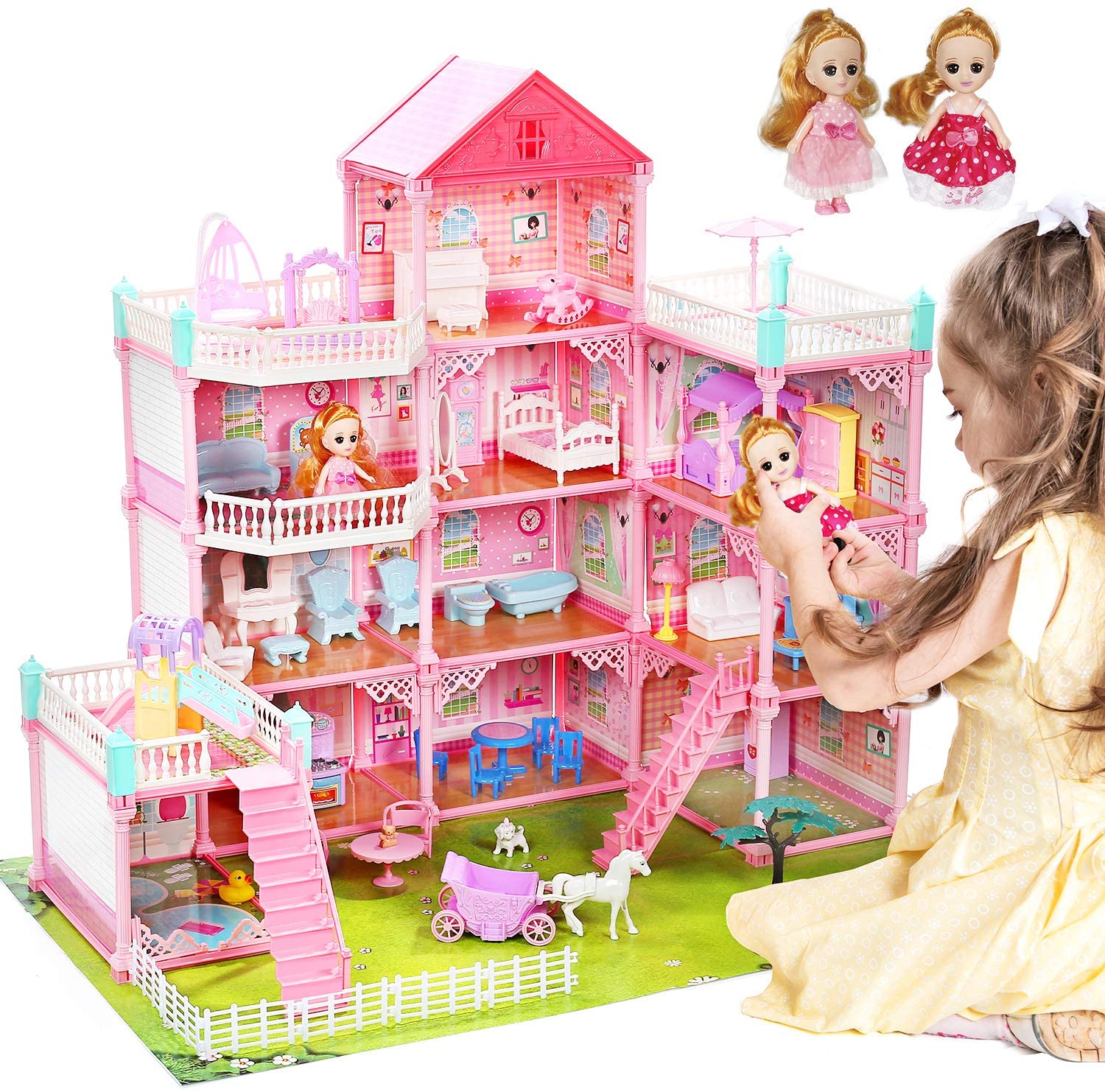 11 Rooms Huge Dollhouse With 2 Dolls And Colorful Light 31 X 28 X 27 Doll House Gift For Girls Walmart Com